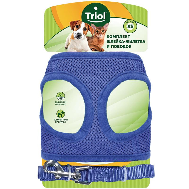 ТРИОЛ Комплект мягкая шлейка-жилетка и поводок нейлоновый Синий XS