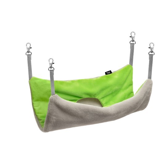 Гамак "Клевер" для мелких животных обязательно понравится вашему питомцу. Выполнен из мягкого плюшевого материала. Легко подвешивается в клетке при помощи карабинов. Цвет: салатовый. Размер гамака: 410*310*20мм. Диаметр отверстия 130мм