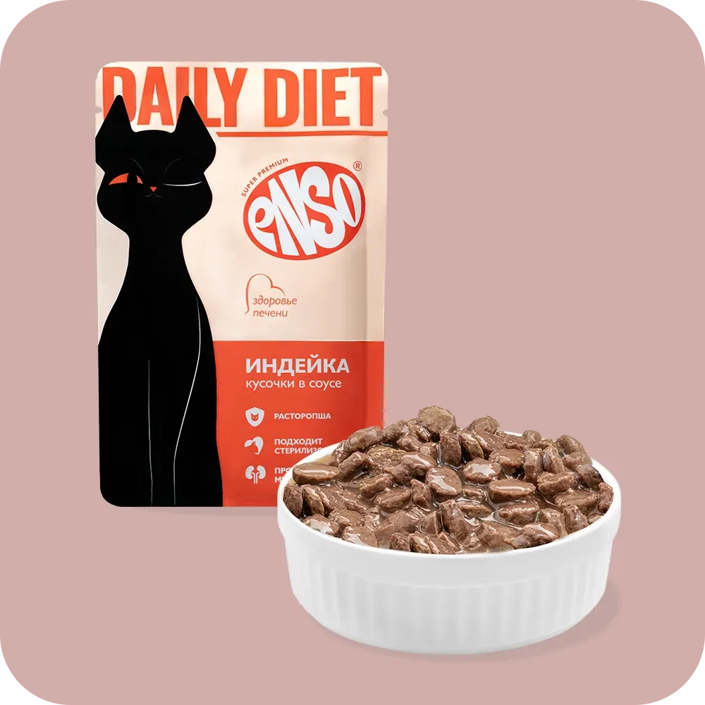 ЭНСО (ENSO) DAILY DIET Пауч для кошек для поддержания здоровья печени кусочки в соусе с индейкой 85г