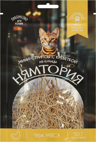 НЯМТОРИЯ Лакомство для Кошек Мини-стрипсы из курицы с креветкой 50г