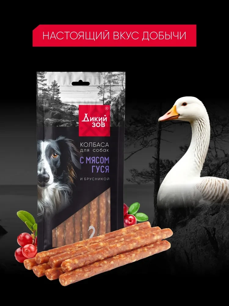 ДИКИЙ ЗОВ Лакомство для собак Колбаса с мясом гуся и брусникой 85г