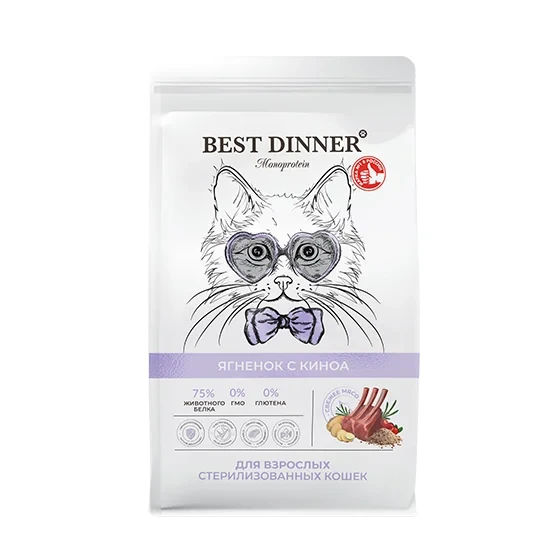 549 ₽БЕСТ ДИННЕР BEST DINNER Monoprotein Adult Sterilised Lamb& Quinoa для стерилизованных кошек, страдающих от аллергии и проблем с пищеварением ягненок и киноа