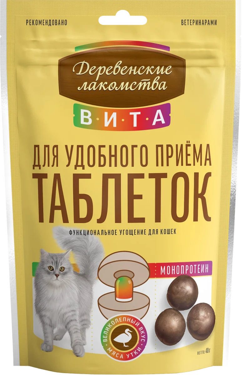 ДЕРЕВЕНСКИЕ ЛАКОМСТВА Угощение для Кошек для удобного приёма таблеток с Уткой 40г