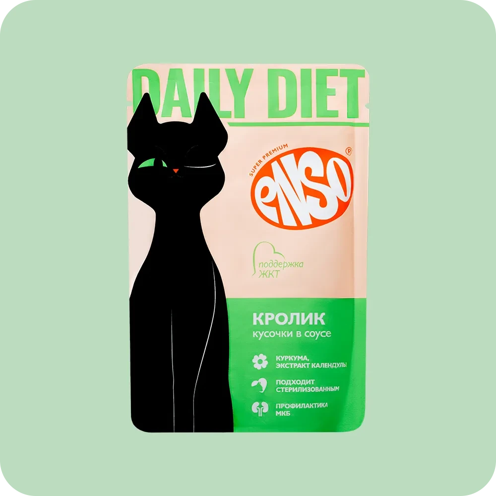 ЭНСО (ENSO) DAILY DIET Пауч для кошек для поддержания здоровья ЖКТ кусочки в соусе с кроликом 85г