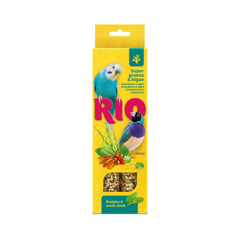 РИО RIO Палочки для волнистых попугайчиков и экзотов, суперзелень и водоросли, 2х40 г