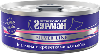 ЧЕТВЕРОНОГИЙ ГУРМАН Silver Консервы для собак говядина с креветками 100г