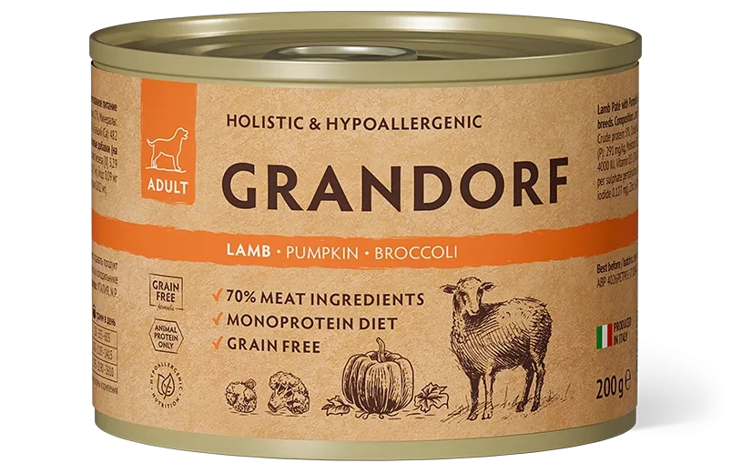 ГРАНДОРФ GRANDORF Консервы для собак паштет из ягненка с тыквой и брокколи 200г
