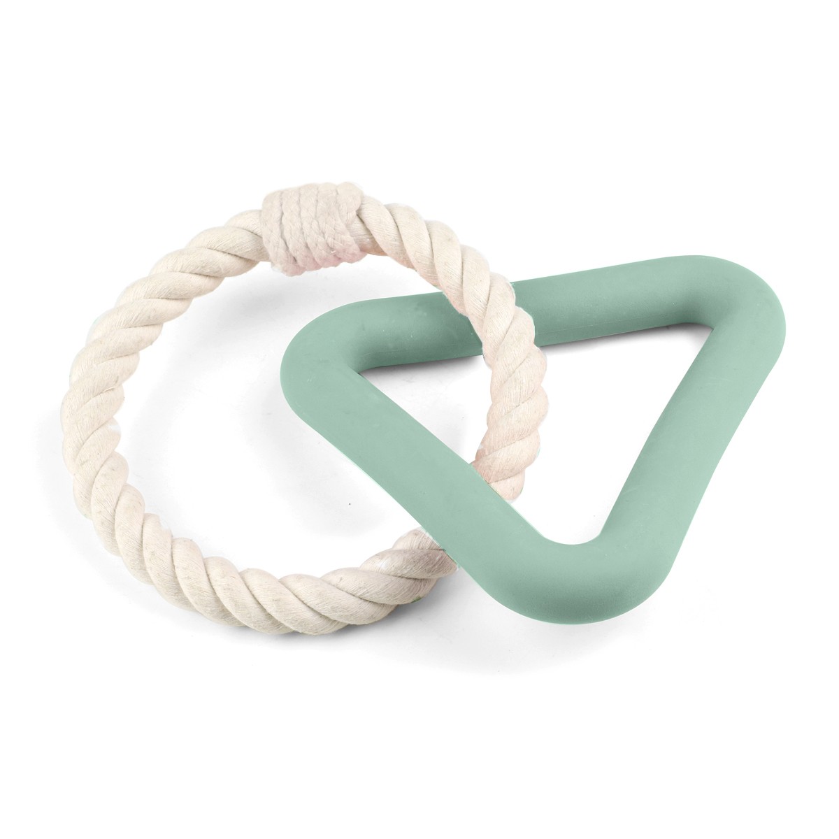 Игрушка в форме треугольника с веревочным кольцом выполнена из термопластичного эластомера - инновационного материала, обладающего высокой прочностью, устойчивостью к внешним воздействиям и изменению температуры. Плетеное кольцо изготовлено из хлопковых нитей, безопасных для вашего питомца. Сочетание двух материалов в игрушке сделает игру более разнообразной, а приятное цветовое сочетание будет радовать глаз.