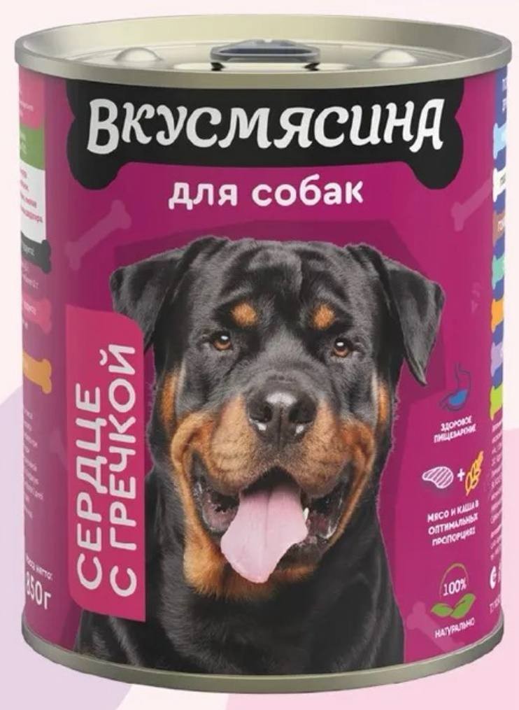 ВКУСМЯСИНА Консервы для собак сердце с гречкой 850г