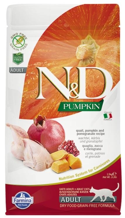 1088 ₽ФАРМИНА N&D Cat Pumpkin Quail Adult сухой беззерновой корм для взрослых кошек Перепелка с тыквой и гранатом