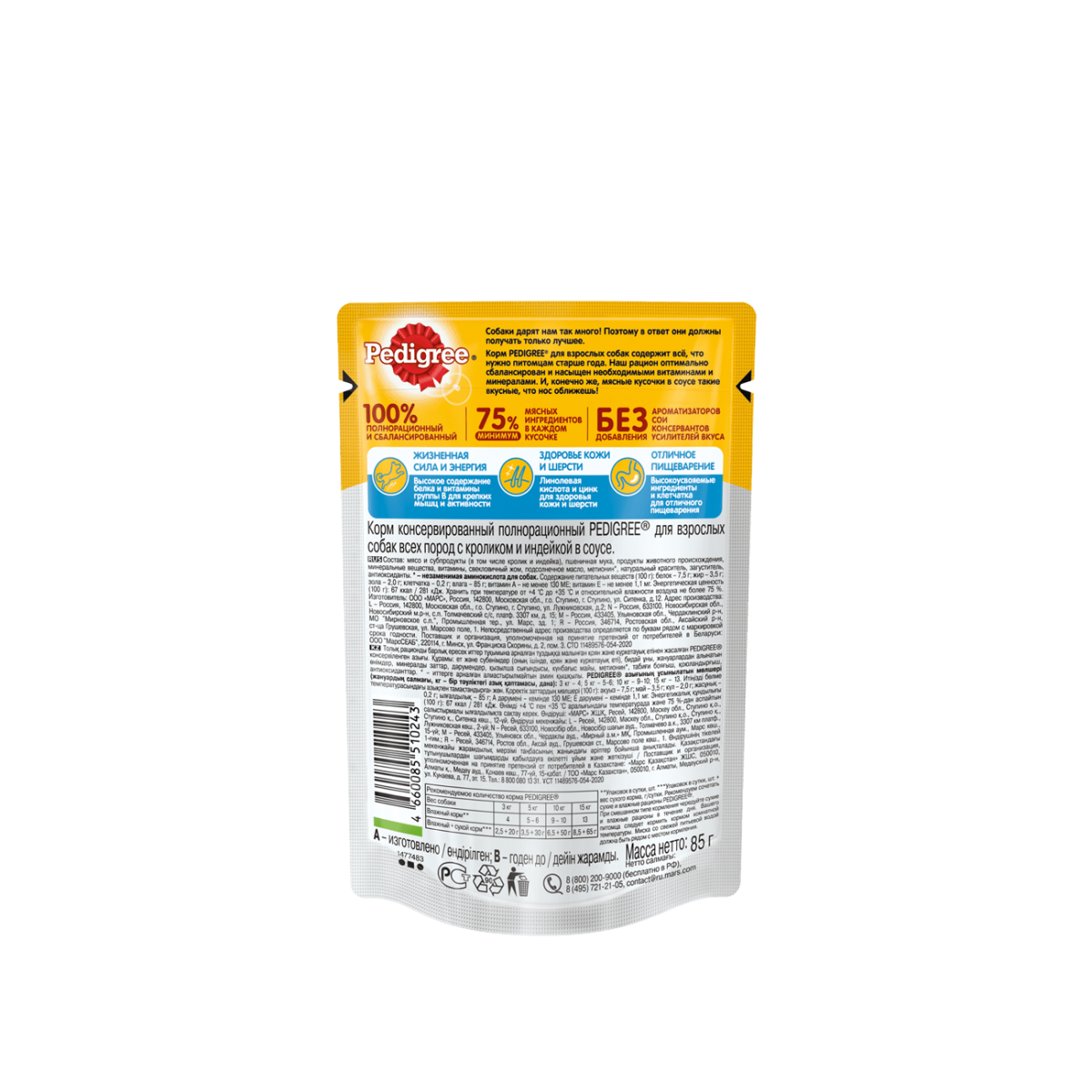 Полнорационный консервированный корм для взрослых собак всех пород.