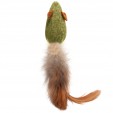 Изделие из спрессованной кошачьей мяты выполнено в виде мышки с пушистым хвостиком из перьев.