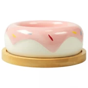 МИСТЕР КРАНЧ (Mr.Kranch) Миска Bamboo Пончик керамическая розовая на бамбуковой подставке 250 мл