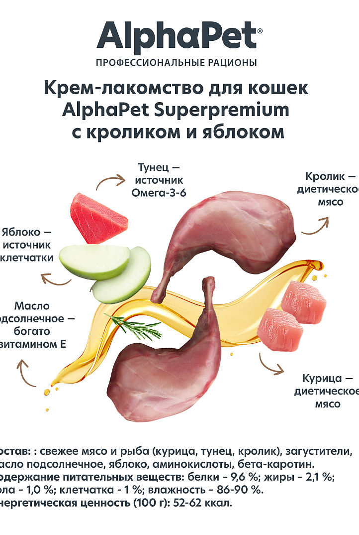 АЛЬФАПЕТ Superpremium Крем-лакомство для кошек с кроликом и яблоком 4шт*12г