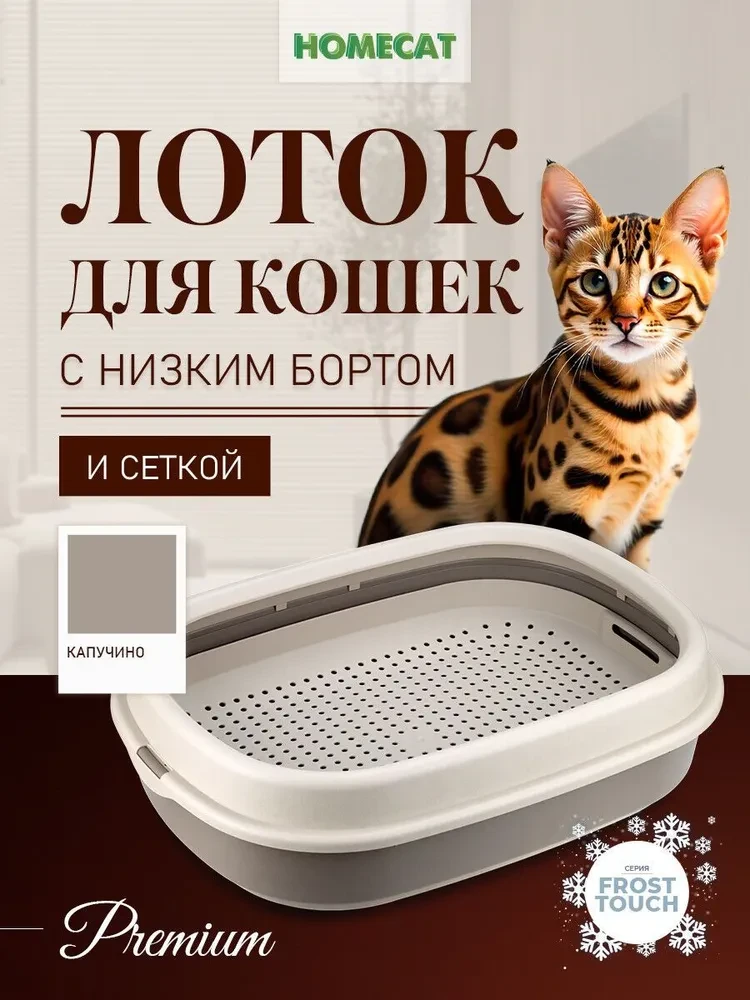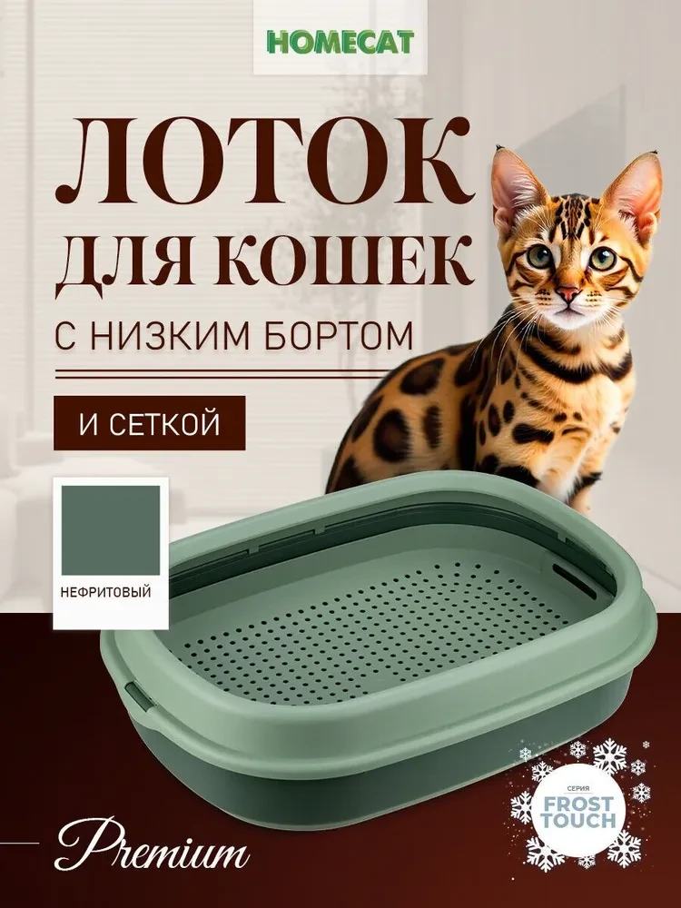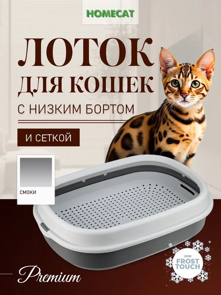 ХОУМ КЭТ НАТУРЕЛЬ Frost Touch туалет для кошек с низким бортом и сеткой 48 см х 35,5 см х 13 см цвет в ассортименте