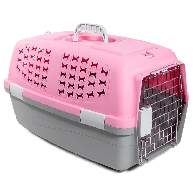 ТРИОЛ Переноска для животных c металлической дверцей "Косточки"S, розовая, 480*300*280мм, серия TRAVEL