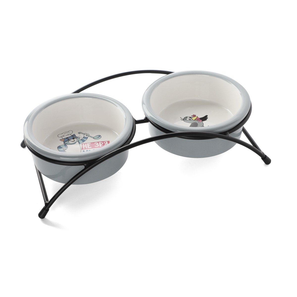 Этот функциональный комплект из двух универсальных круглых мисок на подставке выполнен из керамики высокого качества и отлично подходит для кошек и собак мелких пород. Такие миски идеальны как для воды, так и для корма разной консистенции. Изделие комфортно для питомца и легко моется под струей проточной воды с использованием бытовых моющих средств. А эффектный дизайн с персонажами известного советского мультфильма позволит ей стать украшением любого интерьера. Цвет изделия: серый с белым.