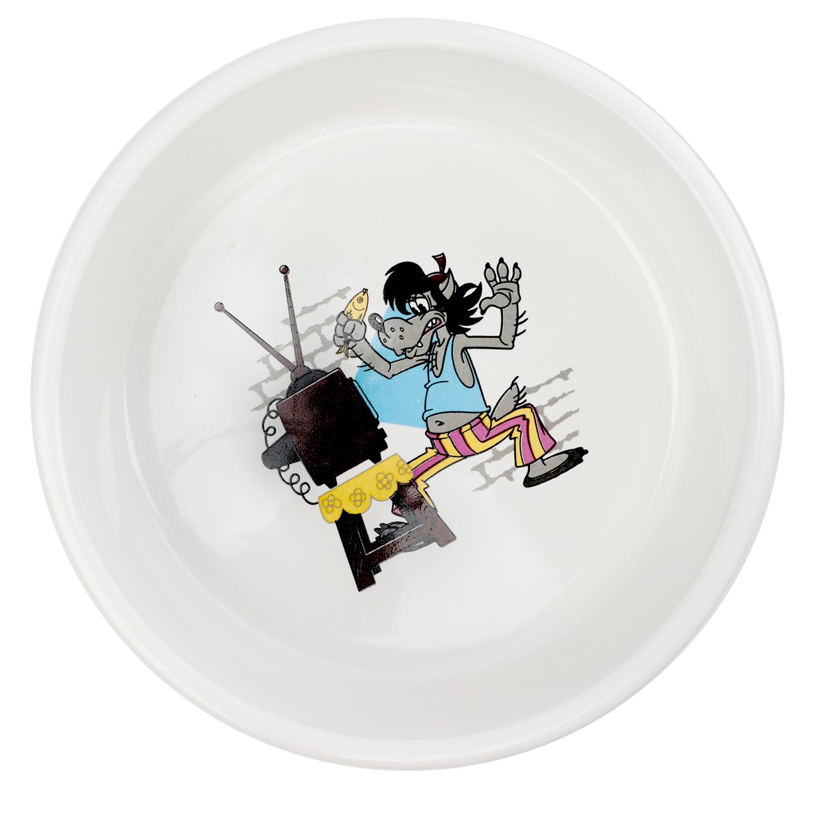 Стильная и функциональная миска для собак и кошек выполнена из высококачественной керамики оригинальной расцветки. Благодаря резиновому кольцу в основании миски изделие не гремит и очень устойчиво на любой поверхности. Такая миска идеально подойдет как для воды, так и для корма любой консистенции. Она комфортна для питомца и легко моется под струей проточной воды с использованием бытовых моющих средств. А эффектный дизайн с персонажем известного советского мультфильма позволит ей стать украшением любого интерьера. Цвет изделия: белый с принтом.