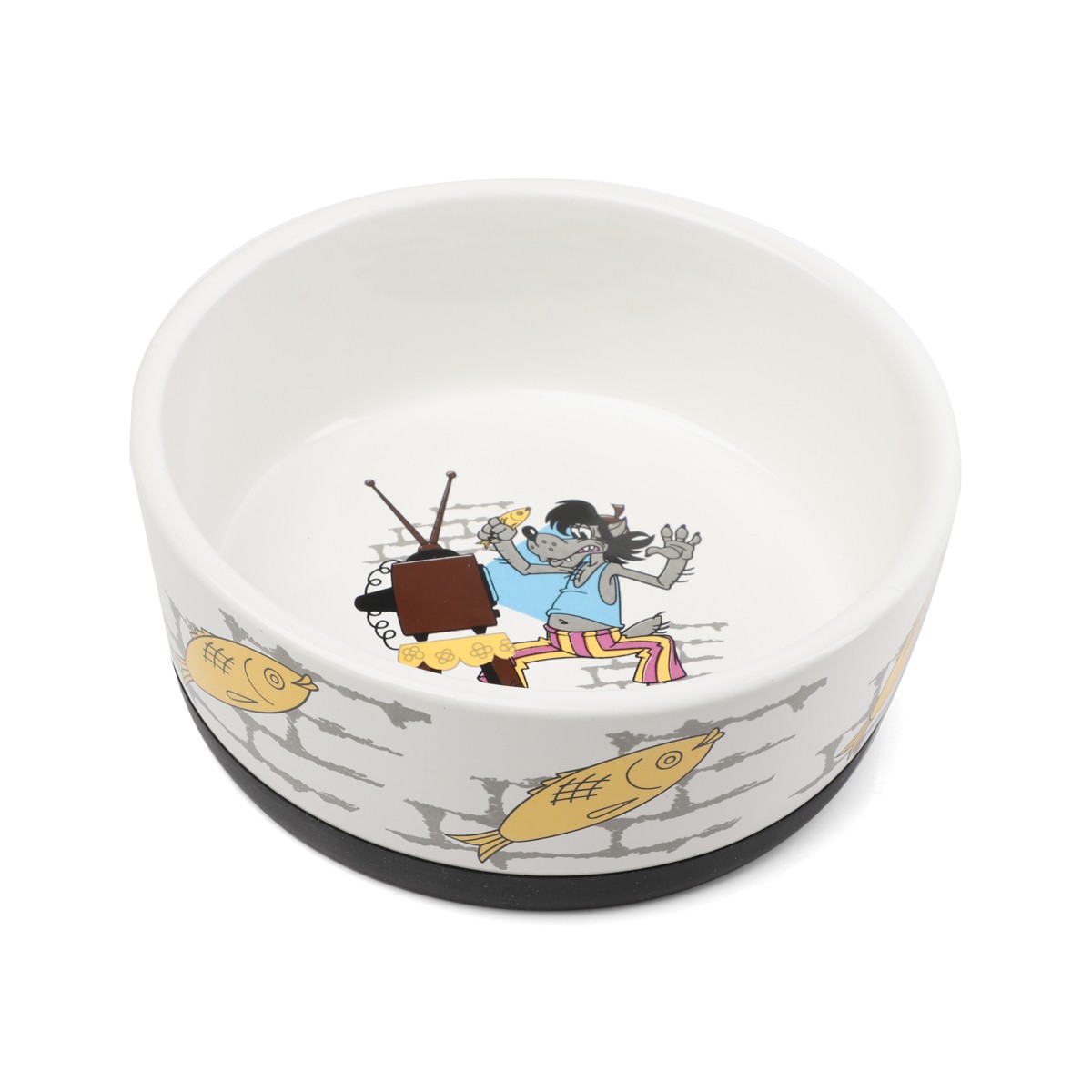 ТРИОЛ СОЮЗМУЛЬТФИЛЬМ Миска для животных керамическая на резинке "Волк", 0.45л
