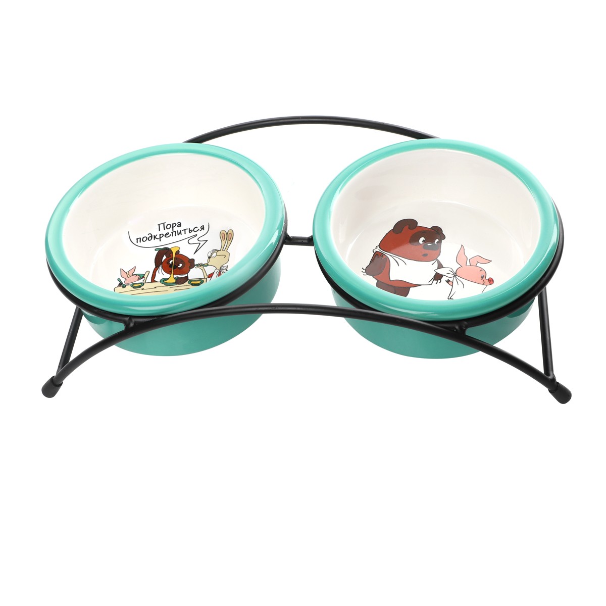 ТРИОЛ СОЮЗМУЛЬТФИЛЬМ Миска для животных керамическая двойная на подставке "Пора подкрепиться!", 2*0.25л