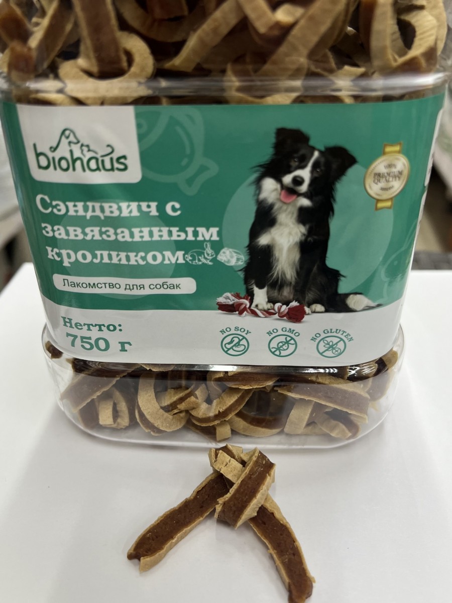 БИОХАУС Лакомство для Собак сэндвич с завязанным кроликом 1ШТ