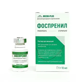 При лечении вирусных заболеваний телят разовая внутримышечная доза составляет 0,1 мл на 1 кг массы тела. При лечении вирусных энтеритов поросятам-сосунам массой 3 – 5 кг вводят внутримышечно в течение 8 суток по 0,5 мл фоспренила.
